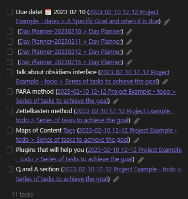 note that in the web view of this vault task queries will not be rendered. However the query blocks can still be used as a reference.